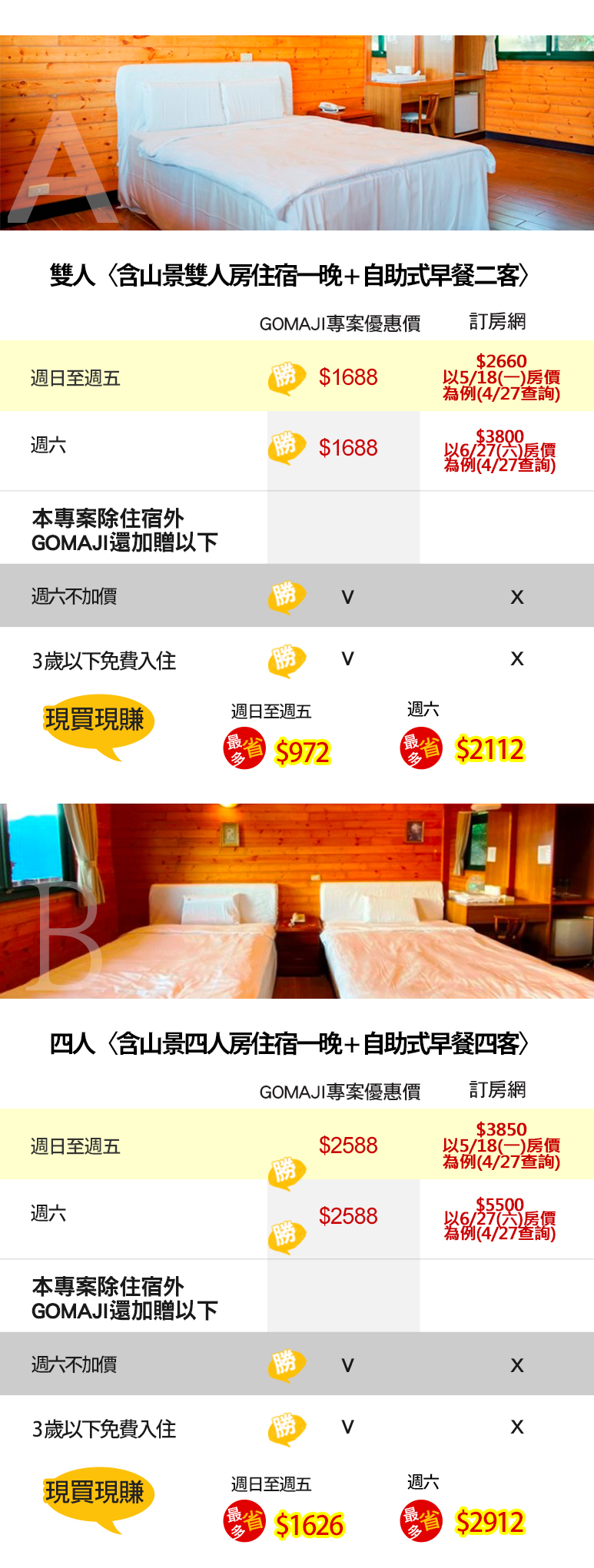▼ 雙人/四人住宿專案,週六不加價!