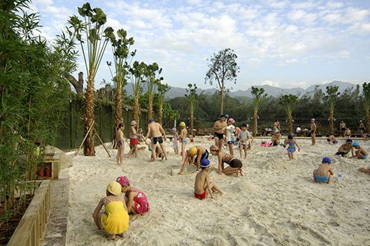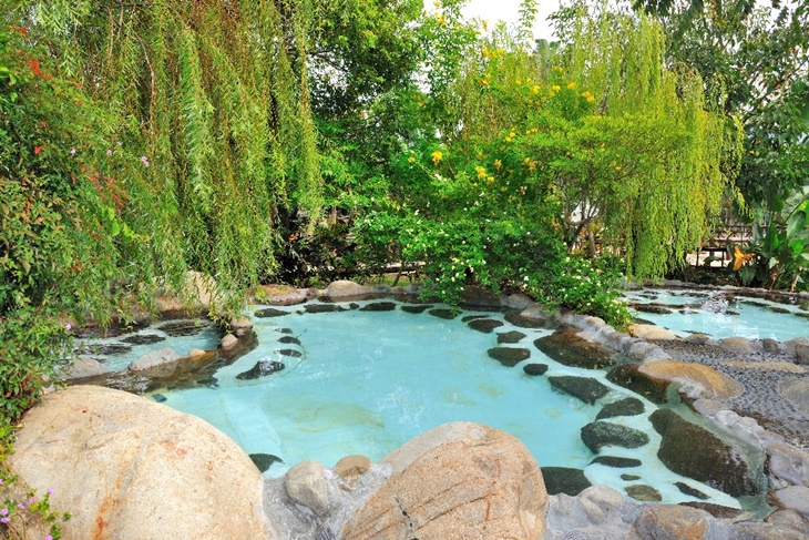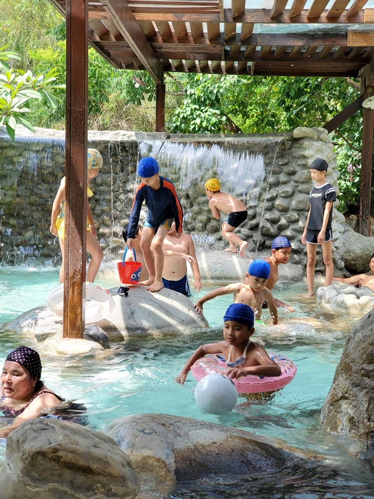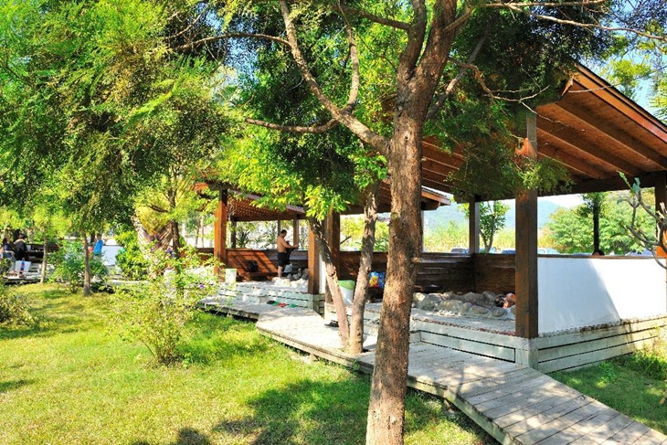 以石頭堆砌的野味湯池,營造自然環境的設計特色,就像在野溪中泡湯一樣自在、輕鬆、休閒,還可享受陽光溫和的照耀唷!
