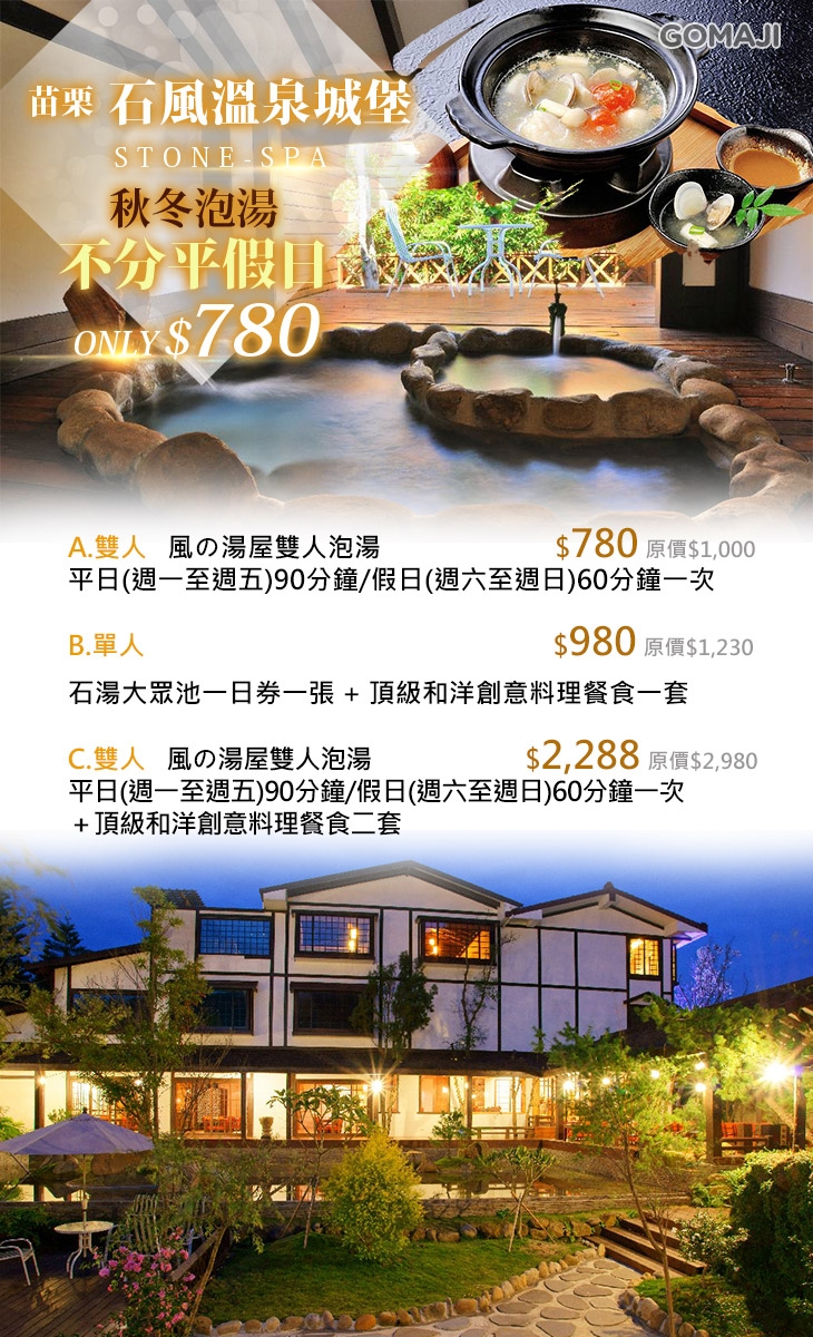 【苗栗-石風溫泉城堡】感謝麻吉們熱烈搶購,已全數賣光光。