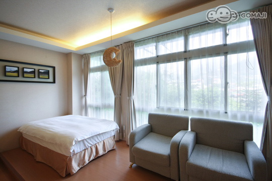 日式極簡風尚的地面,不僅讓整個空間暖和了起來,柔軟的大床、小沙發、讓你待在裡頭也不怕無聊,走出門外,猶如置身南洋島國般,不受人打擾,只存在著陽光、空氣,無論是想盡情又跑又跳,或者附近兜風,全都沒問題!