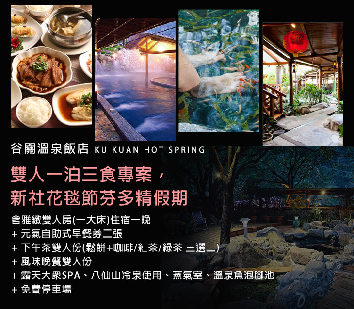 谷關溫泉飯店為谷關地區首家老字號飯店業者,為了要給旅人們最優質的住宿及泡湯品質,多年來不斷創新改建,庭園內瀰漫著濃厚的日式風情,並設有露天溫泉風呂、蒸氣室、溫泉衝擊SPA及溫泉魚泡腳池等,讓您一次享有多元化設備!