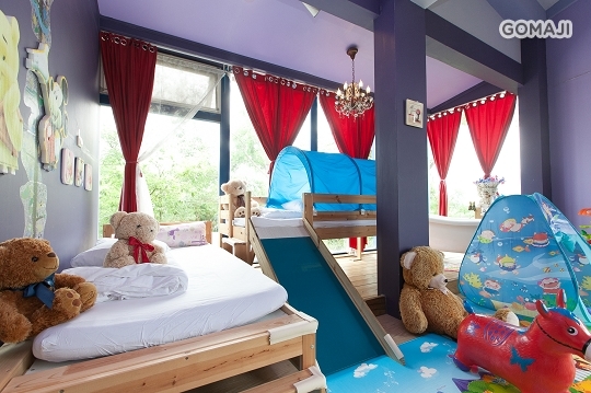 每個房間都有溜滑梯和超多的可愛玩偶,簡直就是孩子們的歡樂天堂!讓寶貝玩得開心、爸媽也能在此愜意地享受悠閒,共享天倫之樂!