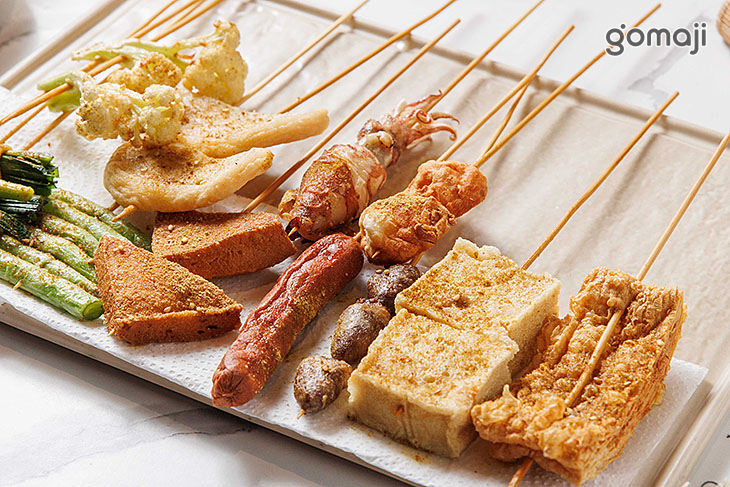 將各式食材一一穿上竹籤後下鍋現炸,外皮酥脆、內裡飽滿多汁。無論是經典的甜不辣、百頁豆腐,還是爽脆蔬菜、彈牙的魷魚,都炸得恰到好處,保留食材原味又增添香酥口感。最後灑上孜然粉或椒鹽,香氣瞬間撲鼻,讓人邊吃邊點頭。無論配啤酒、熱湯或當宵夜小吃,都讓人滿足,是聚會聊天的最佳拍檔!