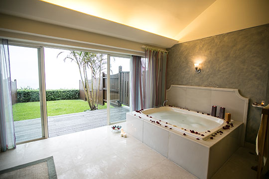 海天一線、近在眼前,湛藍的露天泳池,讓人在豔陽藍天下自在悠游,不論戲水、觀海、或是享受池畔躺椅上的日光浴,皆可讓身心獲得最大的舒暢,一面吹著徐徐海風、享受美景。