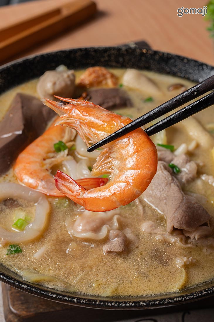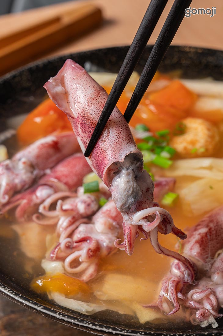選用新鮮番茄燉煮的湯底,自然酸香中透著蔬菜的甘甜,湯色清澈迷人。鋪上滿滿的澎湖小卷,捲曲飽滿、鮮美多汁,彈牙中透出海味精華。搭配高麗菜與丸類等豐富配料,整體口感清爽不膩,從第一口暖到心坎,是海鮮控必點的人氣鍋物!
