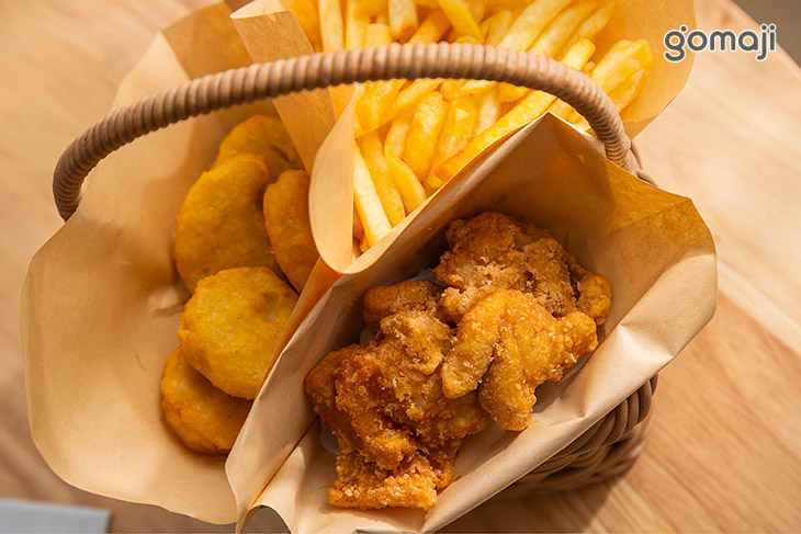金黃色澤的炸物拼盤,裝盛種最療癒的滋味,雞塊、金脆薯條在熱氣升起的那一刻,誘人的香氣在空氣中蔓延,微微油亮的外衣閃著金光,讓人一看就食慾大開。每口都能感受到外酥內嫩的層次,薯條鹹香酥脆、雞塊紮實多汁。