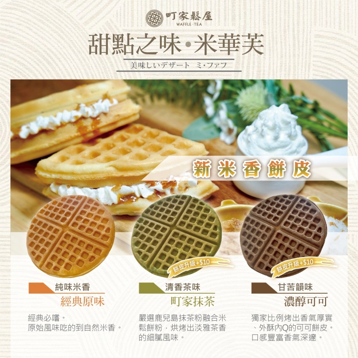 以「町家」為名,靈感來自京都巷弄間的靜謐與溫度。町家鬆屋靜靜座落於桃園藝文特區的巷弄裡,如同一座低調的日式小屋,卻在每一個細節中藏著溫柔的堅持。陽光灑落木格窗,空氣中飄著米香與咖啡香。以西餐手藝揉合台灣在地食材,選用優質米研磨製粉,創造出獨具風味的「米鬆餅」。香氣清新、口感酥脆紮實,傳遞著自然氣息與手作的溫度。町家鬆屋以「米」為靈魂,延伸出鬆軟香氣的米鬆餅,將職人精神注入每一道輕食。這裡不只是甜點店,而是一個讓鹹與甜、早與午後完美共存的空間。從金黃酥脆的唐揚炸雞、滑順細膩的日式蛋沙拉,到綿密鬆香的鬆餅與特色茶飲,每一口都蘊藏著對細節的講究與對時間的尊重。