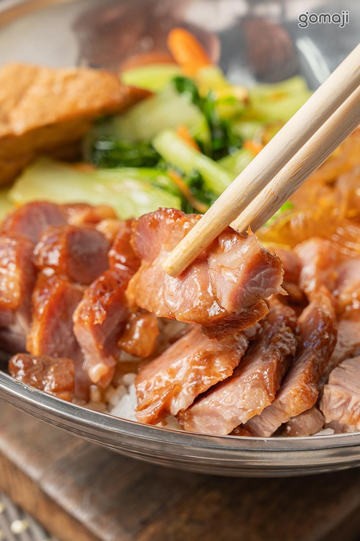 叉燒肉色澤誘人,表面微焦帶香,內裡軟嫩且多汁,每一片都能嚐到醬料的醇厚滋味。搭配底下的白飯,讓叉燒的甜香與米飯的清爽完美融合,口感層次分明,既能滿足味蕾,又帶來輕鬆愉快的用餐感受,是肉控必嘗的美味選擇。