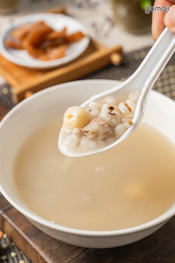 四神湯湯頭清爽卻不失溫潤,藥材香氣融入湯中,帶出自然甘醇的味道。湯裡的四神食材柔軟易咀嚼,口感滑嫩,喝下一口便感到全身舒暢,伴隨微微香氣縈繞齒間。無論單喝或搭配飯食,皆能提升整體餐點的豐富感,讓人回味無窮。