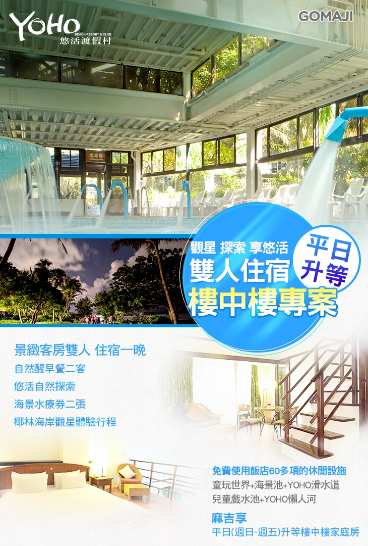 擁有懶人河、YOHO滑水道等多項設施,消除平日所累積的工作壓力,控管水質讓旅客泡的絕對安心,盡情暢玩!