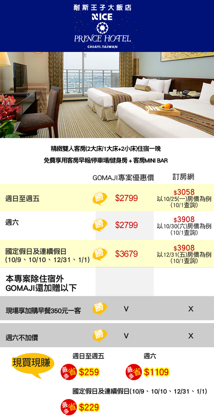 【嘉義耐斯王子大飯店】感謝麻吉們熱烈搶購,已全數賣光光。
