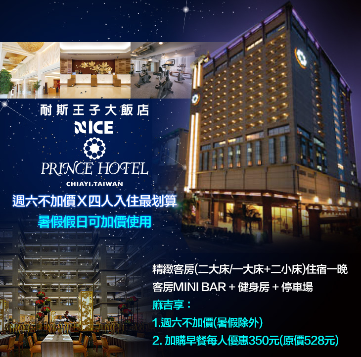 嘉義耐斯王子大飯店為彰雲嘉地區第一家、也是五星級認證國際觀光飯店,擁有日本王子大飯店高標準管理系統及服務品質,結合商務、休閒、娛樂、購物等多元化功能,打造出國際水準與在地文化特色兼容並蓄的創新格局。