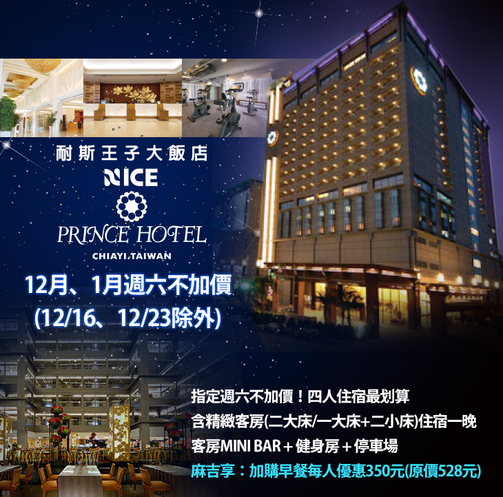 嘉義耐斯王子大飯店為彰雲嘉地區第一家、也是五星級認證國際觀光飯店,擁有日本王子大飯店高標準管理系統及服務品質,結合商務、休閒、娛樂、購物等多元化功能,打造出國際水準與在地文化特色兼容並蓄的創新格局。