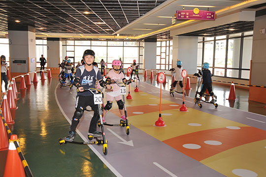 全台飯店第一座滑板車遊戲體驗館啟動!滑雪滑板車外型酷炫吸睛,騎乘時需扭腰擺臀,有助啟發孩童律動神經,家長陪伴同樂,還能增進親子關係,盡情享受馳騁樂趣吧!