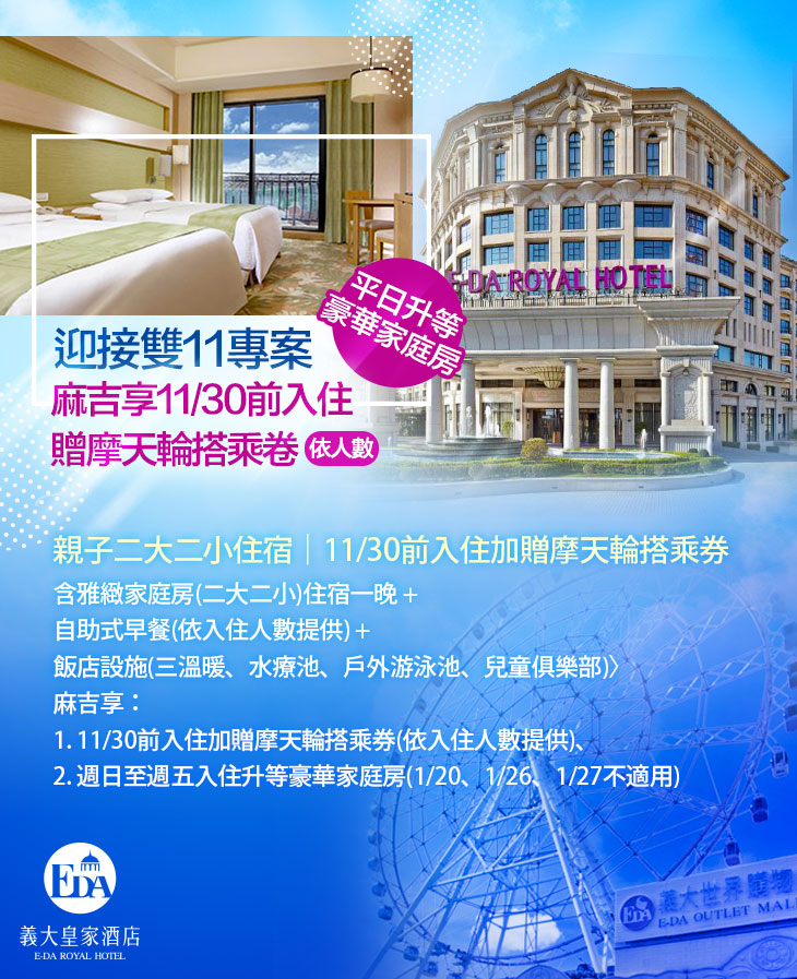 ♛ GOMAJI訂房專享:11/30前入住加贈摩天輪搭乘券(依入住人數提供),機會難得,要搶