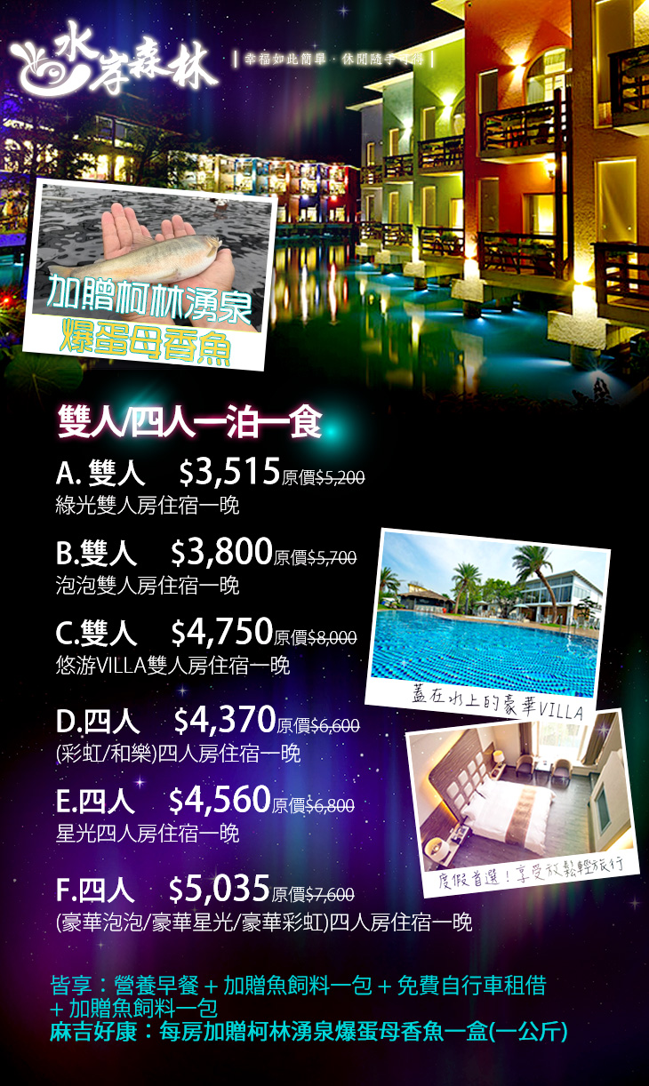 ✔ 專案加碼:每房加贈柯林湧泉爆蛋母香魚一盒(一公斤),好吃彈牙QQ香魚卵,讓您帶回家烹煮、回味無窮!