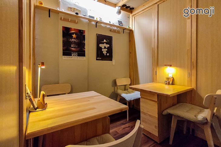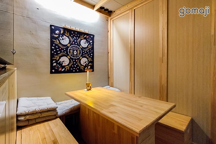 整體空間以大量木質元素為基調,透過原木色澤與溫潤觸感,營造出自然舒適的氛圍。搭配柔和燈光與吧台後方可調整色溫與亮度的燈組,使店內能隨情境轉換為活潑或靜謐的不同樣貌。特製座椅以深色骨架展現沉穩質感,結合真皮包覆的柔軟觸感,提升吧台區的乘坐體驗。另設有可靈活調整的包廂隔間,能在私密與開放之間自由轉換,為每次來訪帶來多變且獨特的空間感受。