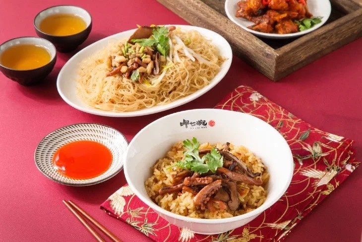 ✔ 知名品牌呷七碗×圓夢咖啡 | 香氣四溢的呷七碗嚴選食材燉煮的台灣油飯及炊粉,經典湯品與餐食,搭配現煮飲品及小吃點心,讓你在香氣與滋味中品味「有溫度的生活品味」。