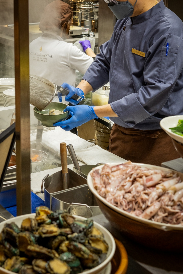 新北北海溫泉洲際酒店於2025年底新開幕,是洲際酒店集團在台的第 3 間據點,也是品牌首度在台灣打造的度假型酒店。酒店內的「嶼 Shima」,以挑高寬敞空間、大片落地窗與溫潤木質設計,營造出明亮而沉靜的用餐氛圍。這裡主打早午餐 buffet,打破一般自助餐限時兩小時的節奏,讓旅人能悠閒享受長達六小時的慢食時光,從各式中西式料理、北海岸海鮮,到金山在地排隊名店美食一次品味。晚餐則推出奢華 semi buffet,除了延續豐富餐檯內容,更融入蒸籠海鮮與手抓海鮮區,各式鮮味輪番上桌,連金山有名甜點也能吃得到,讓人在山海環繞的北海岸,享受一場從空間到味蕾都很有度假感的餐桌體驗。