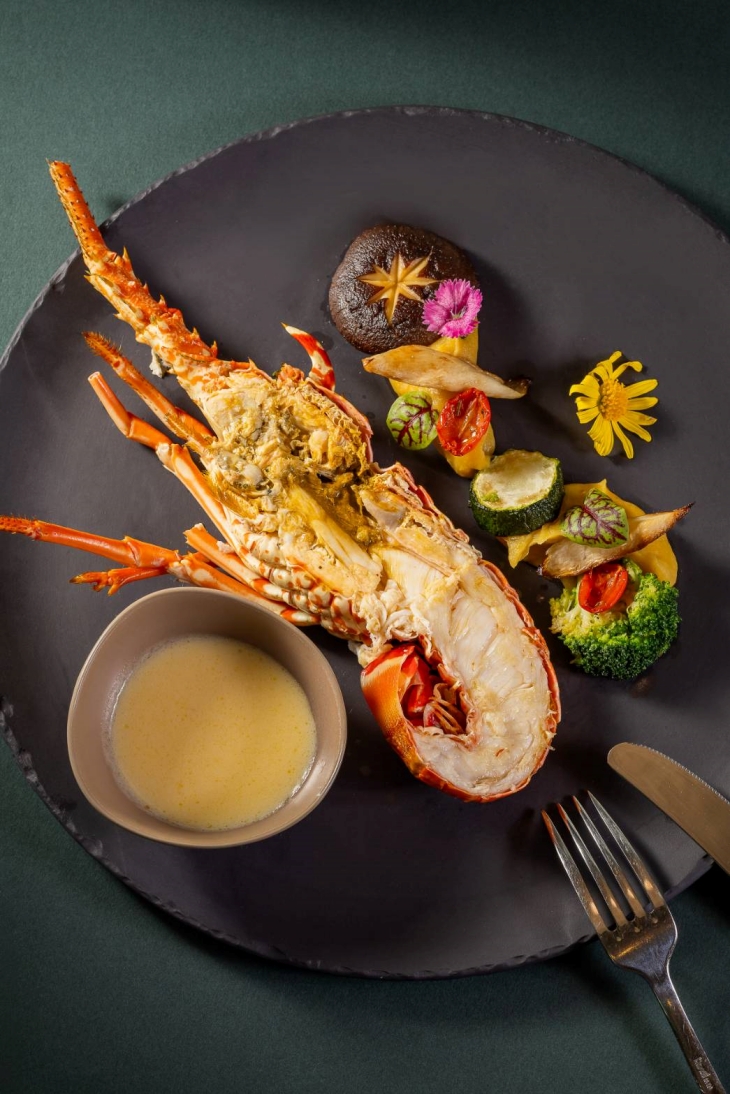 經典法式海鮮之作,以奶油的溫潤與白酒的清新,完美襯托龍蝦本身的鮮甜。整尾龍蝦剖半呈現,鮮紅外殼映襯著雪白飽滿的蝦肉,視覺上即展現華麗氣勢。蒸煮後的龍蝦肉緊實彈嫩,鮮甜細緻,越咀嚼越顯層次。搭配奶油白酒醬汁,將海味柔和包覆,增添滑順與醇厚口感。白酒的淡雅香氣與奶油交融,使整體風味濃郁卻不厚重。盤邊點綴時蔬,提升整體精緻度,是一款適合細細品味的奢華海味料理。