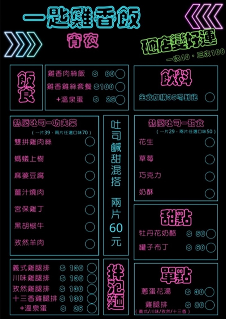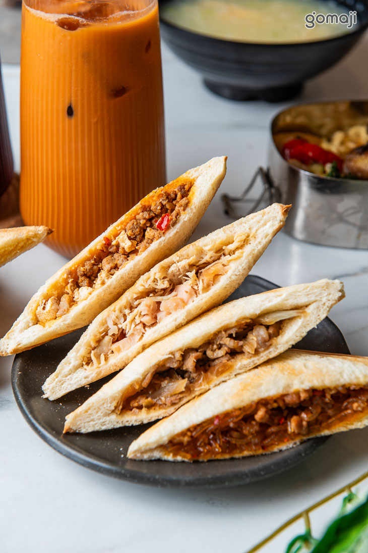 熱壓吐司的魅力在於外層輕脆、內餡香氣滿滿,一咬下去就能感受到甜味在口中緩緩散開。花生的溫潤、巧克力的濃滑、奶酥的柔香,各自都有獨特風格,但共同點都是一入口就讓人覺得療癒。熱壓後的吐司帶著微微酥脆感,搭上餡料的滑順或綿密,形成非常討喜的對比。整體吃起來不會膩,每口都像是小驚喜,是那種吃完會想再加點一份的甜點系吐司。