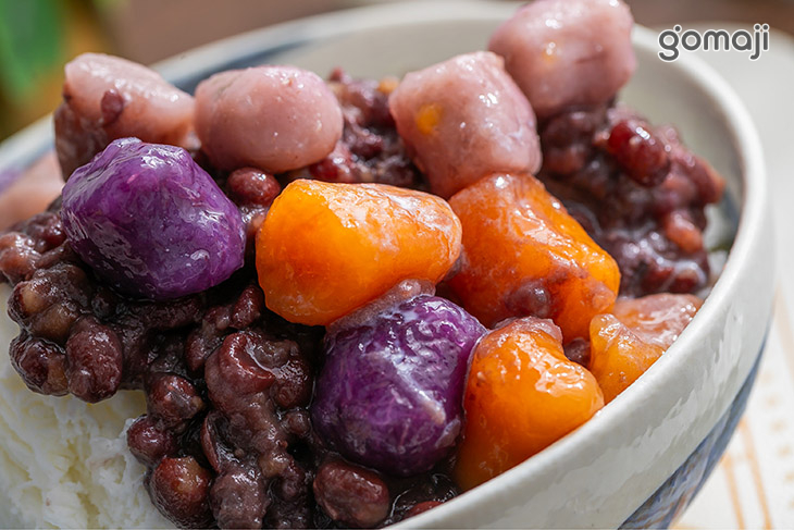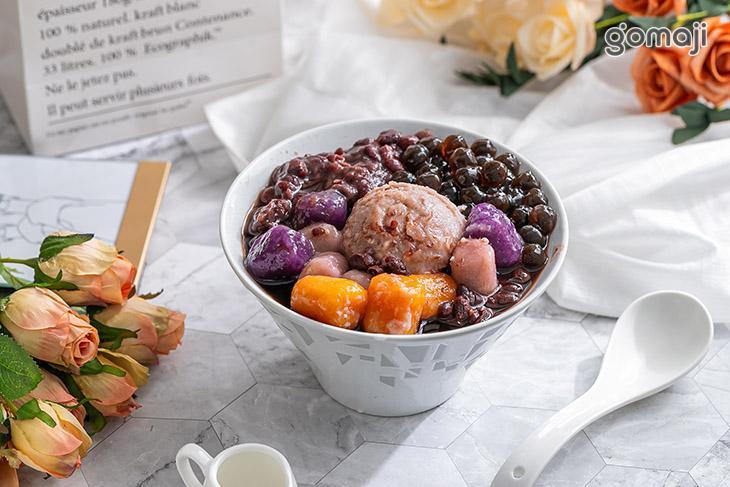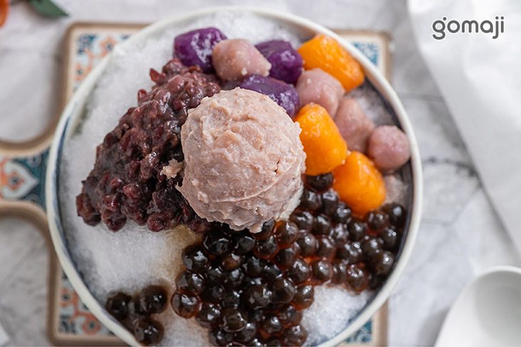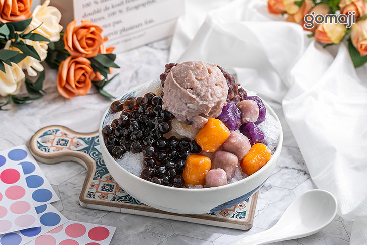 雙芋招牌冰把芋頭控的靈魂一次收服。細緻剉冰鋪底,淋上香濃黑糖糖水,再堆上一大球綿密芋泥,旁邊排滿各式配料,視覺超療癒。口感層次從軟綿、Q彈到帶嚼勁,每一口都充滿芋頭與黑糖交織的香氣。無論是芋頭控、咀嚼控,或只是想犒賞自己的甜點時光,都不能錯過這碗人氣必點的雙芋招牌冰。