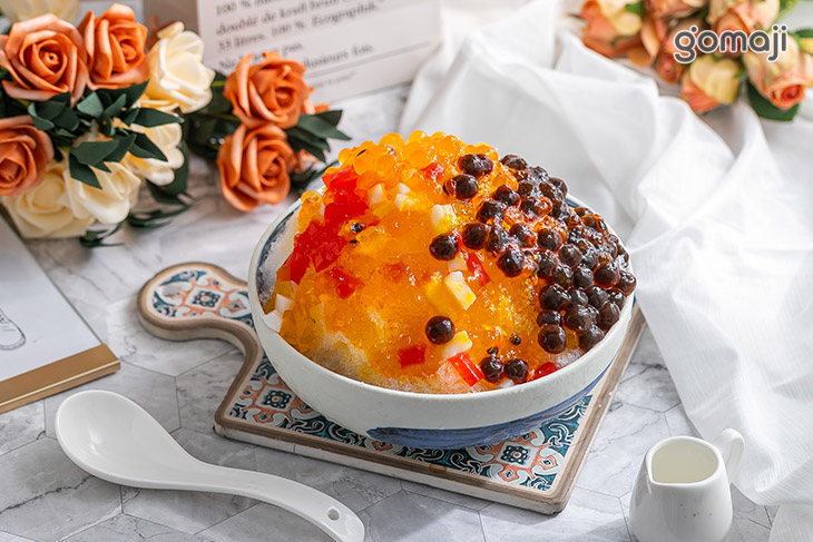 百香雙響冰一上桌,就被那一整座金黃冰山擄獲目光。細緻剉冰淋上酸甜百香果醬,再鋪滿多項配料,色彩繽紛超吸睛。入口先感受到百香果清爽果香在舌尖綻放,接著是Q彈帶嚼勁,層次豐富完全停不下來。炎熱的午後來一碗,從第一口就透心涼,既消暑又有飽足感,是大人小孩都會愛上的夏日必點冰品。