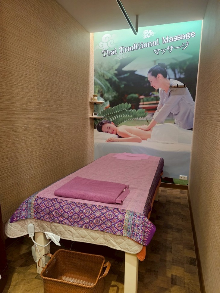 〈足部海鹽淨浴 + 更換輕便棉質和服衣褲 + 放鬆舒筋 + 全身泰式臥佛古法指壓按摩 + 被動式瑜珈舒展 + 頭部舒壓按摩 + 更衣 + 茶飲點心〉