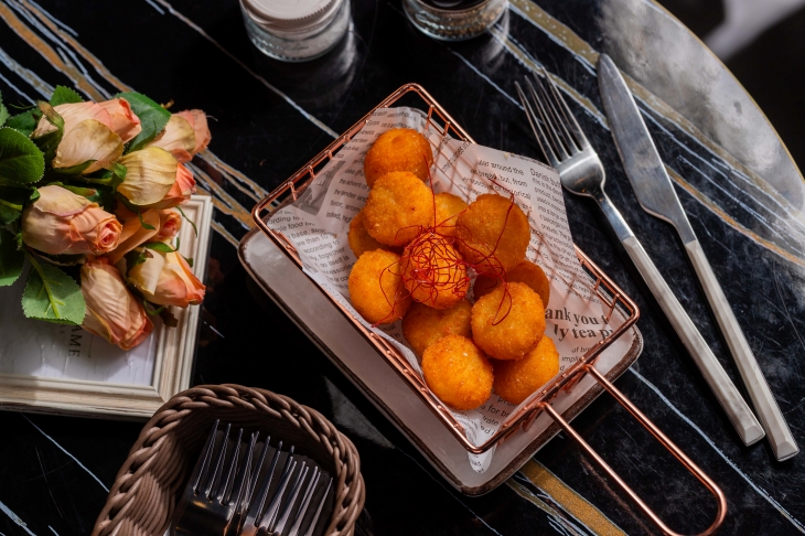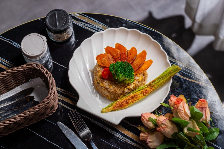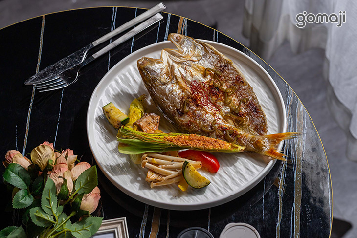 金黃粒粒分明的炒飯鋪成厚實底座,盛上主角「漁夫手作烏魚子」,一片片呈扇形綻開,宛如海面上盛放的金色花瓣,畫面相當吸睛。烏魚子以恰到好處的火候慢煎逼出油脂,外層微微焦香、內裡綿密濃郁,入口散發迷人海味,鹹香層次在口中慢慢延伸。炒飯加入爽脆時蔬與雞蛋翻炒,吸附鍋氣與烏魚子油香,每一口都帶著香氣十足的海洋風情,讓人一上桌就忍不住拿起湯匙大快朵頤。無論是犒賞自己,或與親友分享,這道漁夫手作烏魚子黃金炒飯,都是兼具質感與飽足的奢華選擇。
