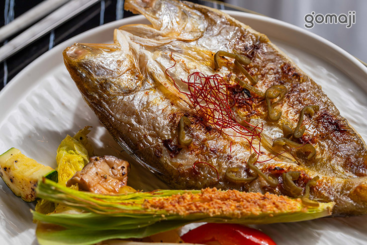 「漁夫手作剝皮辣椒烤午仔魚」一上桌就超吸睛,整尾午仔魚平鋪在白盤上,魚皮烤得微帶金黃焦脆,油脂在燈光下閃著誘人光澤。店家先以特調醬汁醃漬,再塞入香氣奔放的剝皮辣椒入味,入口先是魚肉細緻綿嫩,緊接著是微辣、帶點煙燻感的椒香在口中四散,鹹香層次非常迷人。魚腹油脂豐厚卻不顯膩口,搭配炙烤過仍保有爽脆口感與自然甜味的蔬菜,讓整份料理在濃郁與清爽之間取得完美平衡。每一口都像嚐到現烤海味加上一抹溫暖家常風,是喜歡烤魚與微辣風味的饕客絕對不能錯過的一道主食。