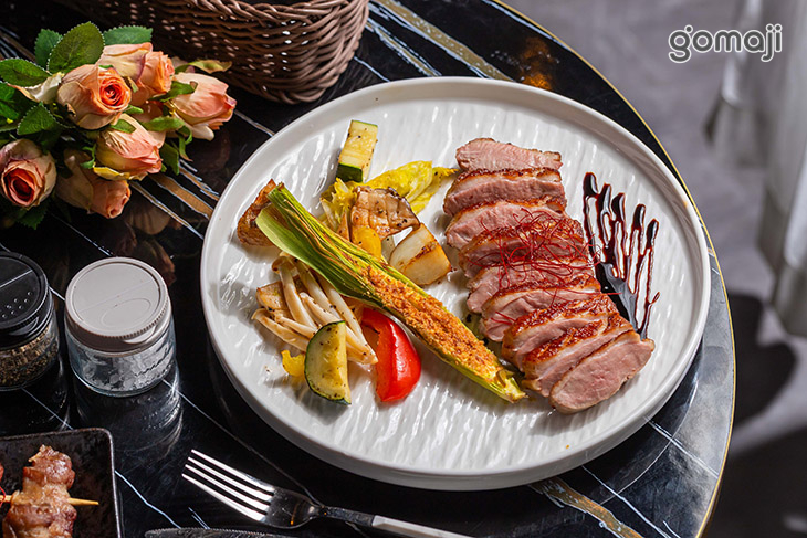 慢烤櫻桃鴨胸一上桌就是優雅系主角,粉嫩切片整齊排開,帶著微微油光,看起來就超欠吃。鴨皮先以小火慢煎,把油脂逼出後再進烤箱慢烤,外層金黃酥香、內裡保持粉嫩多汁,刀子輕輕一劃就能看見細緻肉汁緩緩溢出。入口先是鴨皮香脆的咔滋口感,接著是鴨胸肉柔嫩、有彈性又不帶腥味的濃郁肉香,油脂香氣在口中慢慢化開,鹹香中帶點淡淡甜味,非常迷人。無論是想好好犒賞自己,或與朋友分享一份精緻主菜,這道慢烤櫻桃鴨胸都非常適合,優雅又有記憶點。