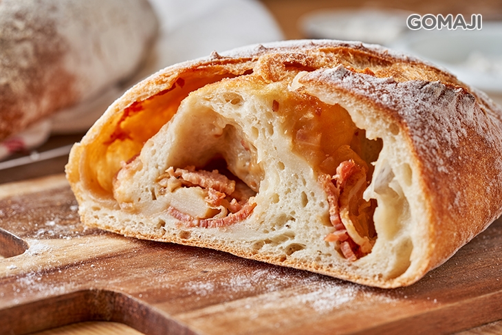 選用日本進口頂級法國粉,其他食材也是岩島成親自嚴選。洛代夫麵包堅持無油、低糖、低熱量,脆香的外層將鹹香的培根和洋蔥緊緊包覆住,嚐得到特調燒肉醬的濃郁,所有美味融為一體,層次分明、輕鹹不膩口,讓您一吃就愛上。