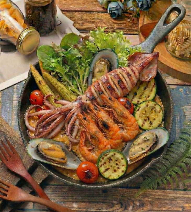 義式深海魷魚拼帶殼雙蝦