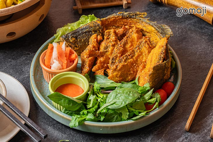 是店裡的人氣特色料理之一,融合越南與南洋料理常見的香草與香料風味,呈現外酥內嫩、香氣層次豐富的口感體驗。選用新鮮魚肉製作,裹粉酥炸,使魚肉表皮酥脆金黃,而內部依然保有細緻多汁的口感,酥炸後的魚肉搭配特製醬汁,帶出微酸、微甜與鹹香平衡的風味。入口時除了酥脆口感,還能感受到南洋料理特有的清爽草本香氣,有著清爽又開胃的層次口感。