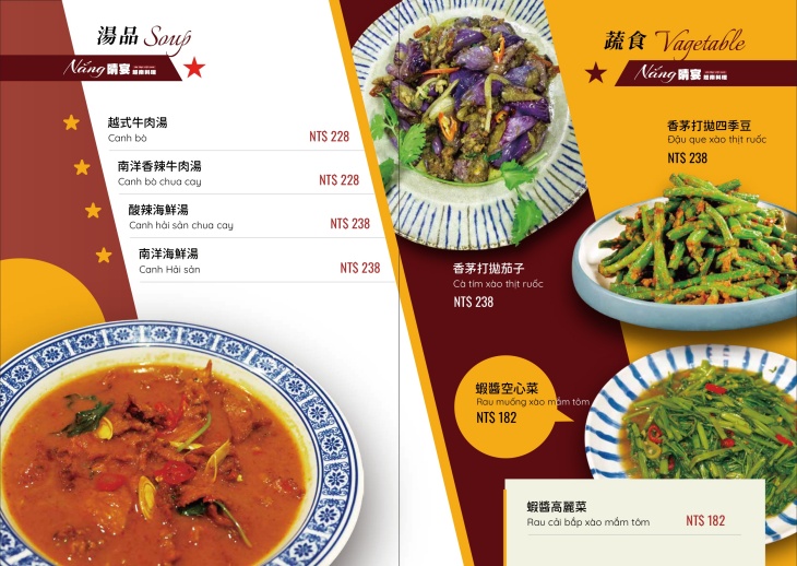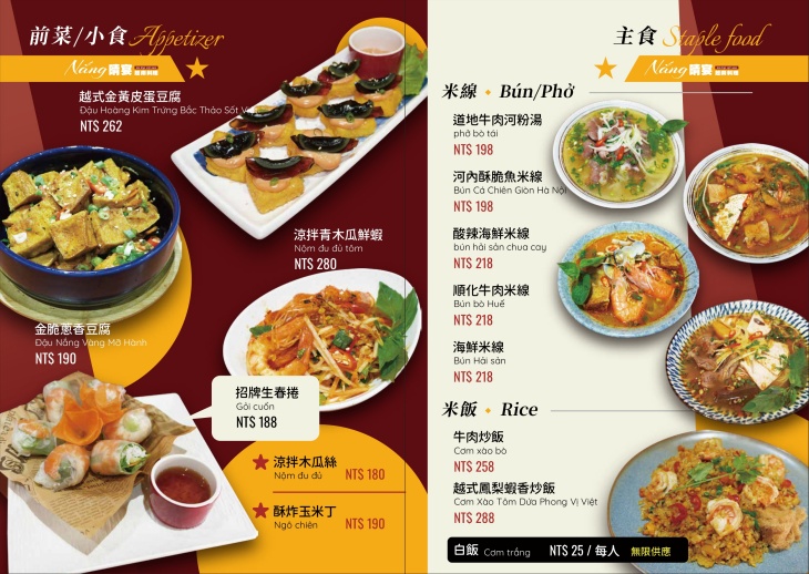 是一間深受在地居民喜愛的越南料理餐廳,店家主打道地越南風味料理,有著清爽、健康且層次豐富的特色。菜色豐富多樣,包含越式香料雞(半雞)、南洋香草酥魚、炙火香茅烤蝦等各式越南料理。南洋香草酥魚以外酥內嫩的酥炸魚肉為主角,搭配南洋香草與特製調味,口感香酥卻富有層次;越南春捲則以新鮮蔬菜、米線與肉類包裹於薄透米紙中,再搭配特製沾醬,清新開胃,深受顧客喜愛,多以香草、檸檬、魚露等天然調味呈現越南料理特有的酸、甜、鹹平衡風味,吃起來清爽不油膩,十分符合現代人追求健康飲食的需求。餐點價格親民,讓顧客能以實惠價格享受高品質的越南美食。
