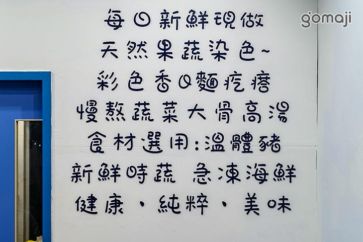 隱身在巷弄裡,藍白色招牌與小攤車一眼就讓人聯想到乾淨、清爽的海風氣息。店內空間不大,木質地板搭配長吧檯座位,氛圍溫馨舒適,很像走進鄰家小廚房,用餐毫無壓力。牆上寫著店家的堅持:每日現做麵疙瘩,以天然蔬果上色,不靠人工添加,讓一顆顆小麵疙瘩吃起來 Q 彈又安心。湯底則以蔬菜與大骨慢火細熬,搭配溫體豬、新鮮時蔬與急凍海鮮,強調健康、純粹與美味並存。無論是一人簡單吃碗麵,或和家人朋友一起來碗熱騰騰的麵疙瘩,都能在這裡感受到店家對食材與料理的用心,是三重想吃手工麵疙瘩時,很值得收藏的一個好去處。