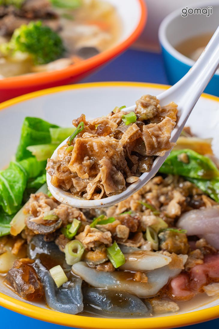 什錦海鮮麵疙瘩一上桌,就被澄澈金黃的湯頭和繽紛配料圈粉。Q 彈麵疙瘩浸潤在慢火熬煮的高湯中,吸滿鮮甜湯汁,每一口都柔軟又帶嚼勁。碗裡鋪滿多種海鮮,搭配爽脆時蔬,豐富層次在口中交織出濃郁卻不厚重的海味。舀一匙入口,先是湯頭溫潤滑順,接著是海鮮的鮮、蔬菜的甜與麵疙瘩的麵香依序綻放,吃到最後仍忍不住把湯喝得一滴不剩,是一碗暖胃又滿足的海味享受。