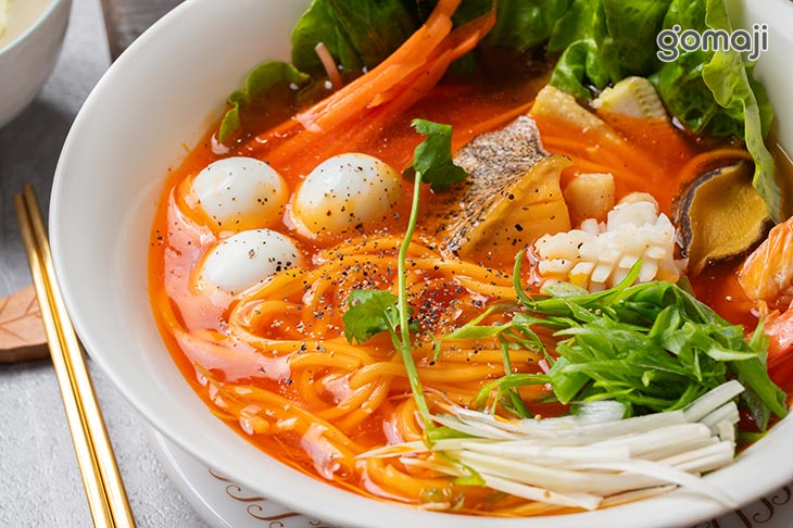 整體口感是清爽又有層次的路線。湯頭喝起來不厚重,入口是溫潤順口的感覺,帶著淡淡的海味香氣,越喝越順,不會有負擔感。湯麵的口感重點在於「滑順」。麵條吸附湯汁後依然保有彈性,不會軟爛,咬下去有勁又不費力,搭著湯一起入口特別舒服。湯汁包在麵條外層,每口都很平均,不會忽淡忽濃。