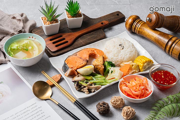 檸檬椒鹽鮭魚餐盒是一款吃起來很清爽、卻又很有存在感的餐盒。鮭魚本身油脂豐富,但透過檸檬與椒鹽的搭配,把油香拉得剛剛好,不會覺得膩,反而越吃越順口。第一口就能感受到鮭魚外層微微煎香,裡面依然保持柔嫩多汁,口感細緻,不乾不柴。