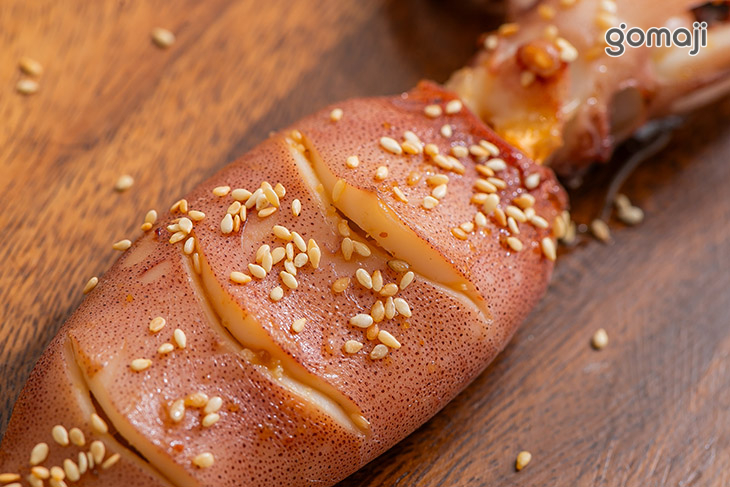 整條大魷魚霸氣呈現,份量感十足。炙烤後外層微微焦香,帶著誘人的香氣,咬下去彈牙有勁,越嚼越能感受到海味在嘴裡慢慢釋放。表面刷上的特製醬汁鹹甜交織,與魷魚本身的鮮味融合得恰到好處,不會搶味卻更添層次。口感紮實卻不難咬,帶著微微炭火香氣,吃起來過癮又滿足。無論是朋友聚會分享,還是想來點重口味小食,這道都會讓人一口接一口停不下來。