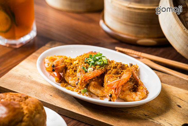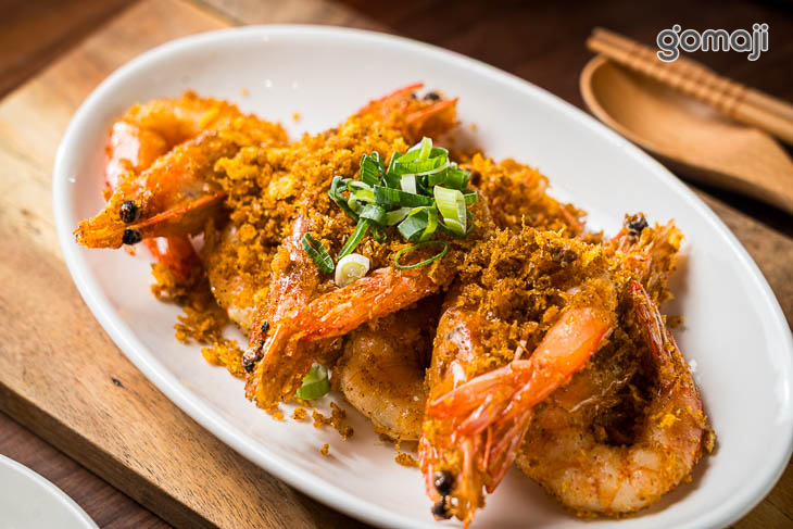 整盤鋪滿金黃蒜酥,像下了一場蒜香流星雨,把鮮蝦團團包圍,視覺氣勢十足,蝦殼炸得乾爽酥脆,色澤紅潤誘人,光看就讓人口水加速分泌。咬下去先是蒜酥的酥脆聲響,接著是蝦肉彈牙多汁的鮮甜,蒜香在嘴裡霸氣展開卻不嗆口,反而越嚼越香。避風塘特有的鹹香滋味,搭配微微辣勁與胡椒香氣,層次分明又帶點港式豪爽感。