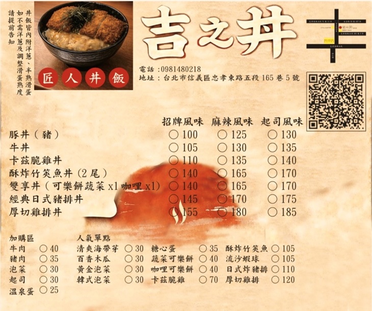 店內空間簡潔明亮,用餐氛圍輕鬆自在,無論是一個人想好好吃頓飯,或是與朋友相約聚餐都相當合適。餐點選擇多樣,每一款都有自己的特色與口感表現。吉之丼不只是簡單的一碗丼飯,更是一份讓人能大口享受、充滿飽足感的日式美味。
