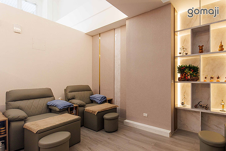 〈課程說明 + 薰衣草/玫瑰海鹽足浴舒緩 + 肩頭壓力釋放舒壓按摩20分 + 專業腳底及小腿按摩舒壓手技40分 + 越式洗髮30分 + 吹風機乾髪 + 招待(茶飲/甜點/泡麵/河粉)〉