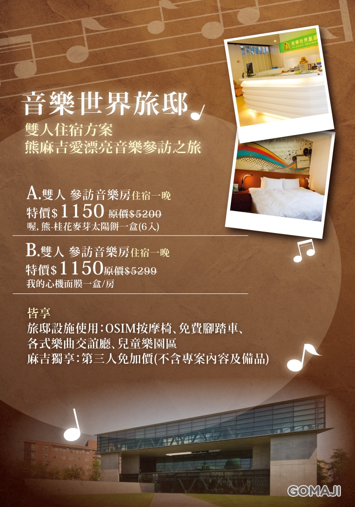 【台中-音樂世界旅邸】感謝麻吉們熱烈搶購,已全數賣光光。