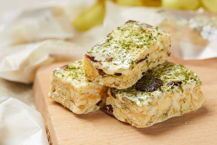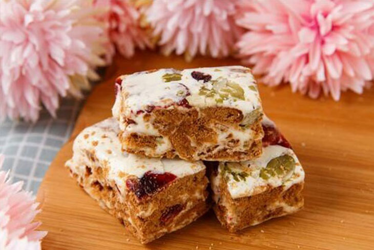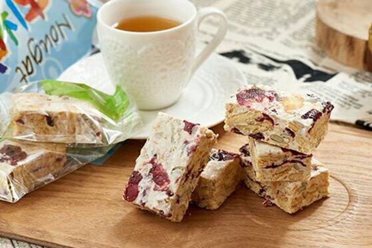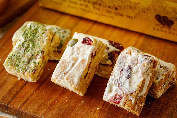 牛軋糖蘇打餅外層酥脆內餡軟Q,鹹甜鹹甜相互融合的口感,奶香和餅香同時在嘴裡迸發出幸福滋味,不死甜不黏牙,一片接一片好涮嘴!