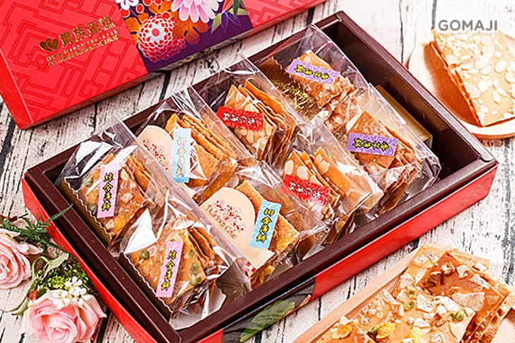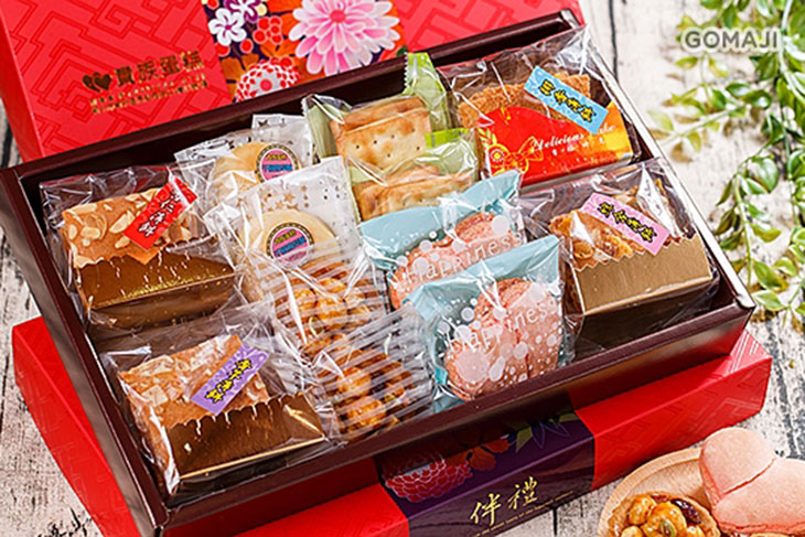 年節團圓禮盒(每盒含千層鳳梨酥二個+綜合堅果塔二個+牛軋糖蘇打餅二包(四片)+草莓甜心二入+杏仁薄餅一包+香芋薄餅一包+椰香薄餅一包+綜合薄餅一包) 二選一〉