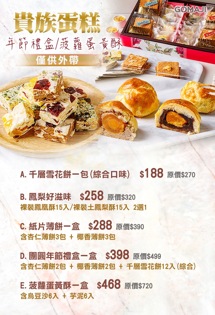 令人愛不釋手的【貴族蛋糕】,嚴選上好的天然原物料,搭配細膩的手法和獨門配方製作而成,精細又費時的過程,品質、原料、外觀都要求近乎完美,堪稱配得上貴族,華麗細緻、驚艷美味,讓它成為您最優異的典藏伴手禮吧!
