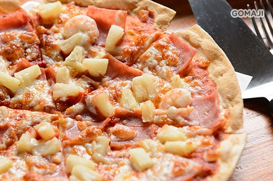 以自製紅醬打底,再加上鳳梨與鮮蝦仁,酸酸甜甜的口感,搭配特選火腿,融合酸甜鹹的好滋味,老少咸宜,是最受歡迎的經典夏威夷風味。