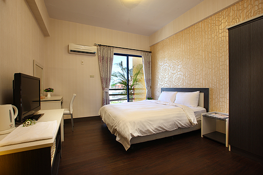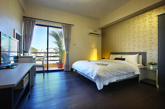 淨白無暇的床單枕被,讓人一進房就想先不顧一切的躺下,深色原木的地板與廚櫃,給人沉穩放心的感覺,拉開窗簾,一望無際的好天氣與美景盡收眼底,開闊的藍天與陽光,給心中滿滿的舒暢與勇氣,微風帶著芬多精與花香拂過耳邊,休息片刻準備整理行李後,無後顧之憂的出去享受陽光的眷顧囉!
