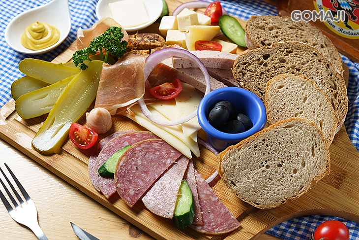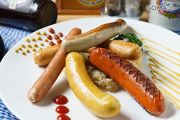 主廚手工製作的德國香腸,製作過程耗時又費工,以台灣在地豬肉加入歐洲當地的香料調製而成,吃起來就是道地!綜合香腸拼盤有五種不同風味;其中,巴伐利亞手工傳統香腸的特殊口感讓您一吃就上癮,辣甜椒香腸添入匈牙利紅椒,多了微微辣味,在味蕾上綻放出更多驚喜。
